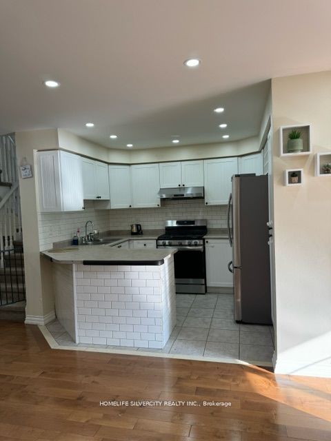 Beautiful End Unit town home Two plus one Bedroom, in An Amazing Location!. Hardwood Floors On The Ground, Main Level. Beautiful Kitchen With Stainless Steel Appliances, Gourmet Double Oven, Breakfast Bar, Pantry, Back splash & Large Dining Area. Ground Floor Family Room. Open Concept Living / Dining Area With Walkout To Balcony. Upgraded Principal En-suite With big glass Shower. Easy Interior Access To The Garage. Steps To Parks, Shopping, Hospital, Lakefront Trails, The Highway & Public Transit.