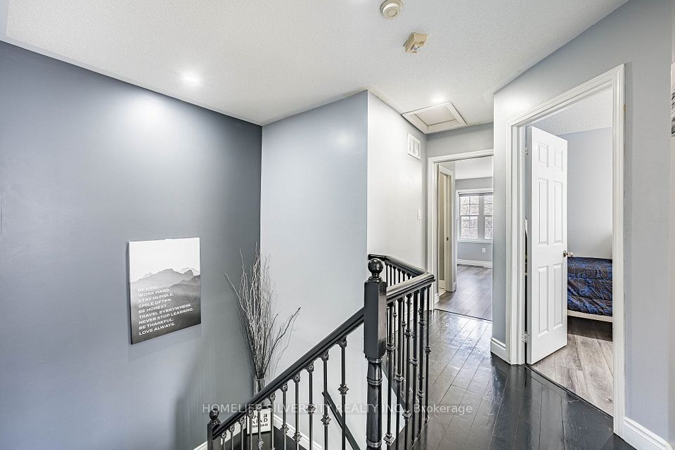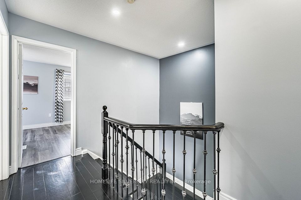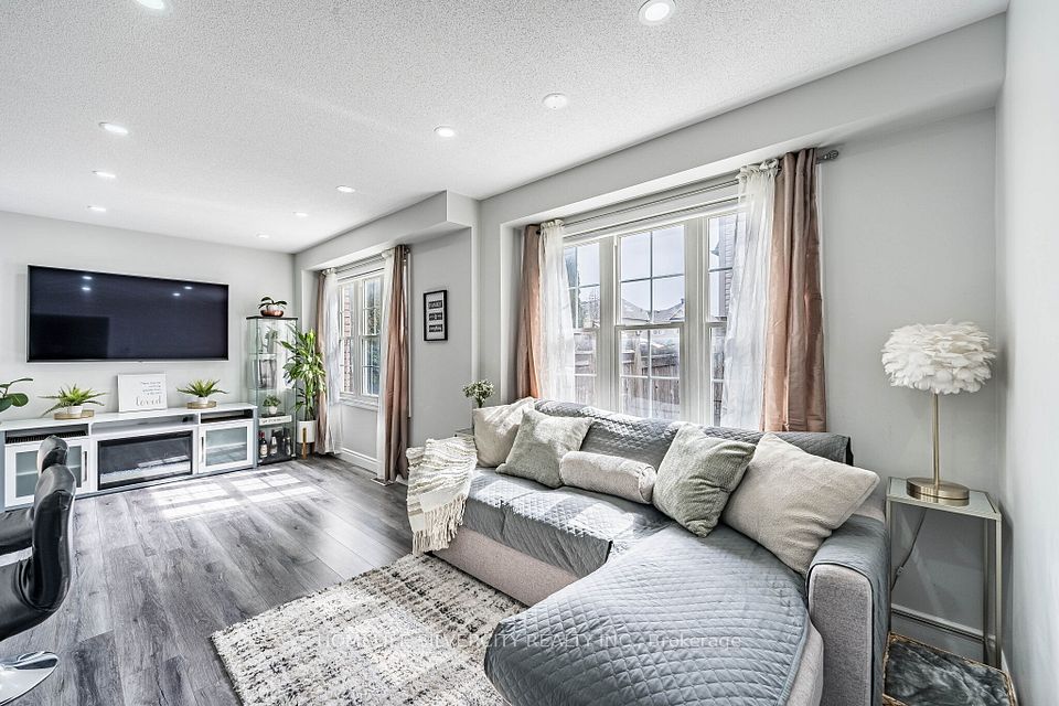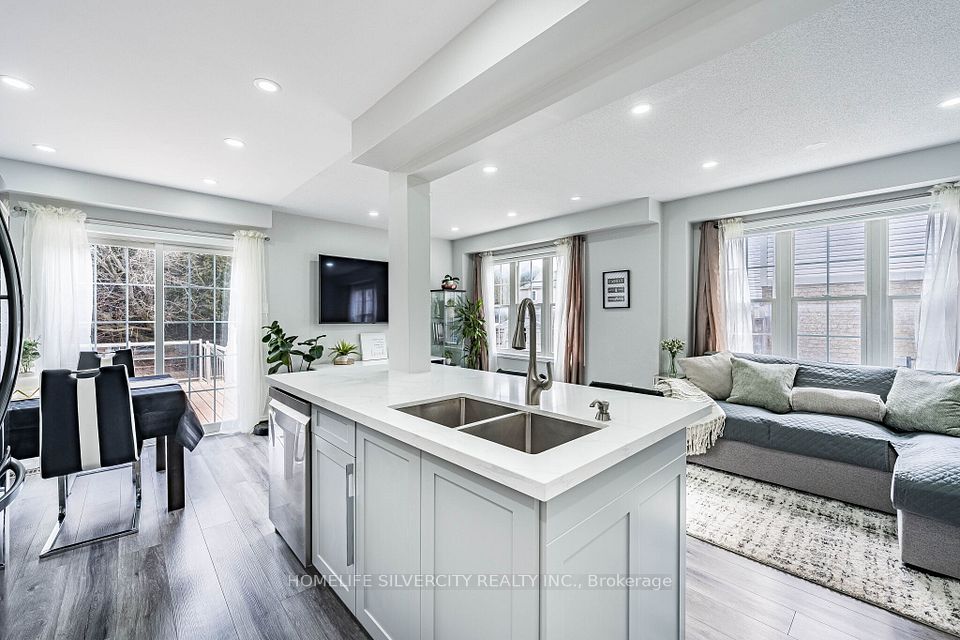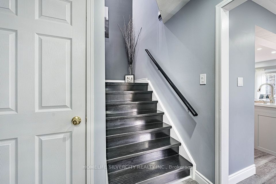 GORGEOUS Freehold End unit Townhouse ***** WITH RAVINE ***** in Great neighborhood **** House Boasts excellent location, well kept, fully upgraded and move in condition. Beautiful interlock stone wraps around the house - in front, side and at the back. Convenient access from Garage access to the home office ( it has rough in done for another laundry set ); Main floor filled with Pot lights, upgraded flooring in Living / Dinning room, modern Kitchen with long cabinets, pull out pantry / pot drawers, quartz counter tops, valance light and lots of natural light. Breakfast area leads to walk out yard with two - tier deck and beautiful lush green ravine at the back. Upstairs three bedrooms, with 4 pc ensuite in master bedroom, custom cabinet, mirror and quartz counter top. Finished basement with rec room, one bedroom and 3 pc washroom gives opportunity to invite in-laws or use as nanny suite. Owned tank less water heater ; Location close to school, public transit and shopping area.
