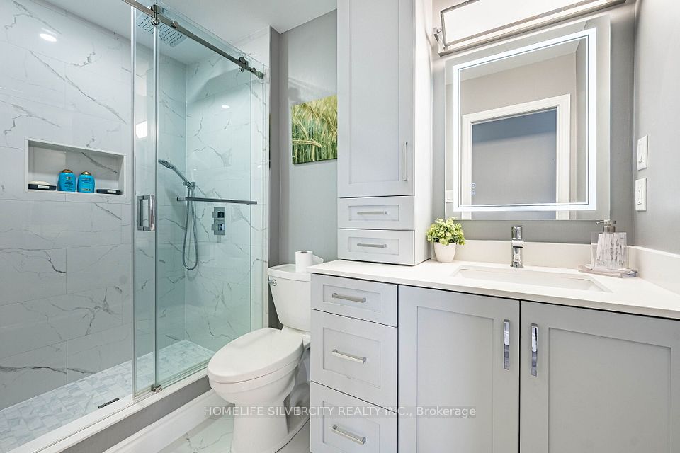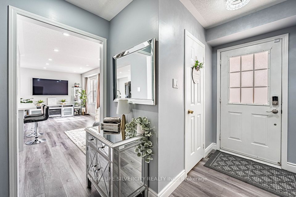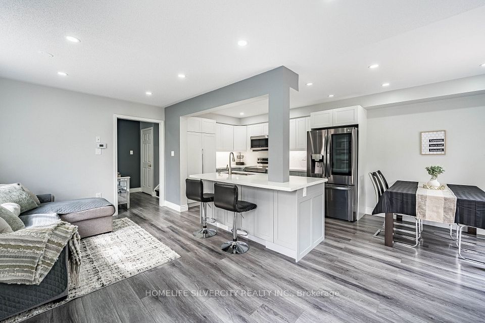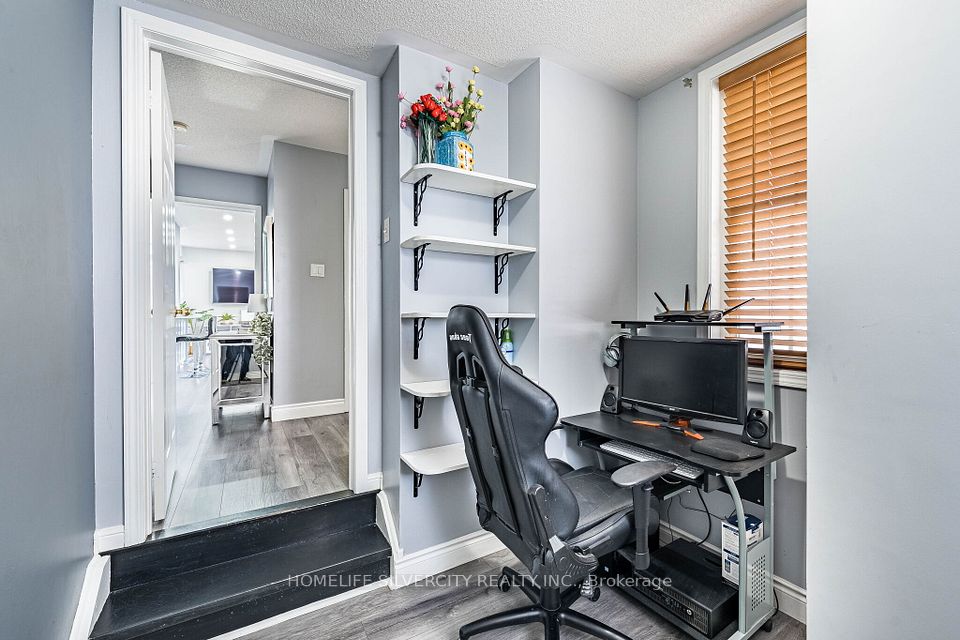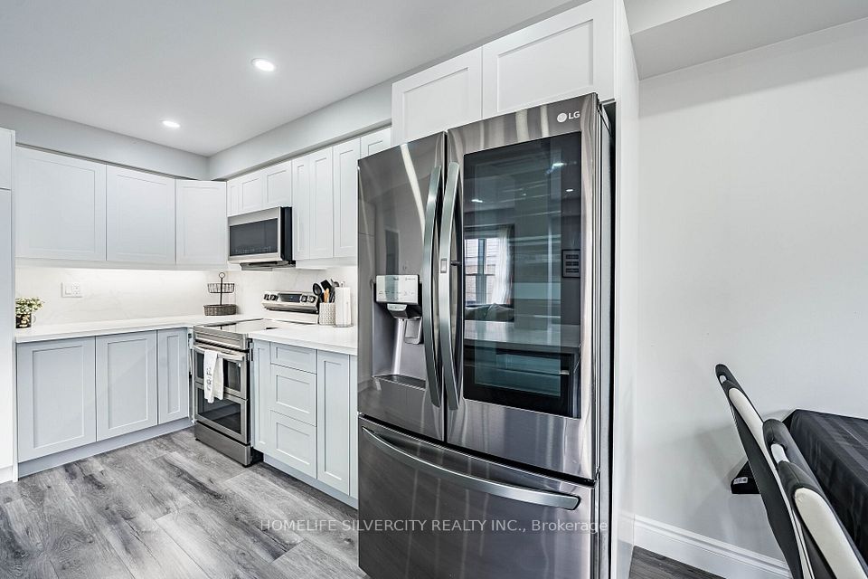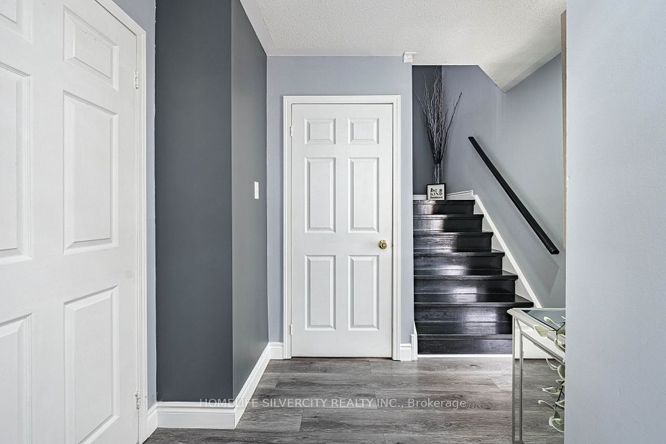 GORGEOUS Freehold End unit Townhouse ***** WITH RAVINE ***** in Great neighborhood **** House Boasts excellent location, well kept, fully upgraded and move in condition. Beautiful interlock stone wraps around the house - in front, side and at the back. Convenient access from Garage access to the home office ( it has rough in done for another laundry set ); Main floor filled with Pot lights, upgraded flooring in Living / Dinning room, modern Kitchen with long cabinets, pull out pantry / pot drawers, quartz counter tops, valance light and lots of natural light. Breakfast area leads to walk out yard with two - tier deck and beautiful lush green ravine at the back. Upstairs three bedrooms, with 4 pc ensuite in master bedroom, custom cabinet, mirror and quartz counter top. Finished basement with rec room, one bedroom and 3 pc washroom gives opportunity to invite in-laws or use as nanny suite. Owned tank less water heater ; Location close to school, public transit and shopping area.