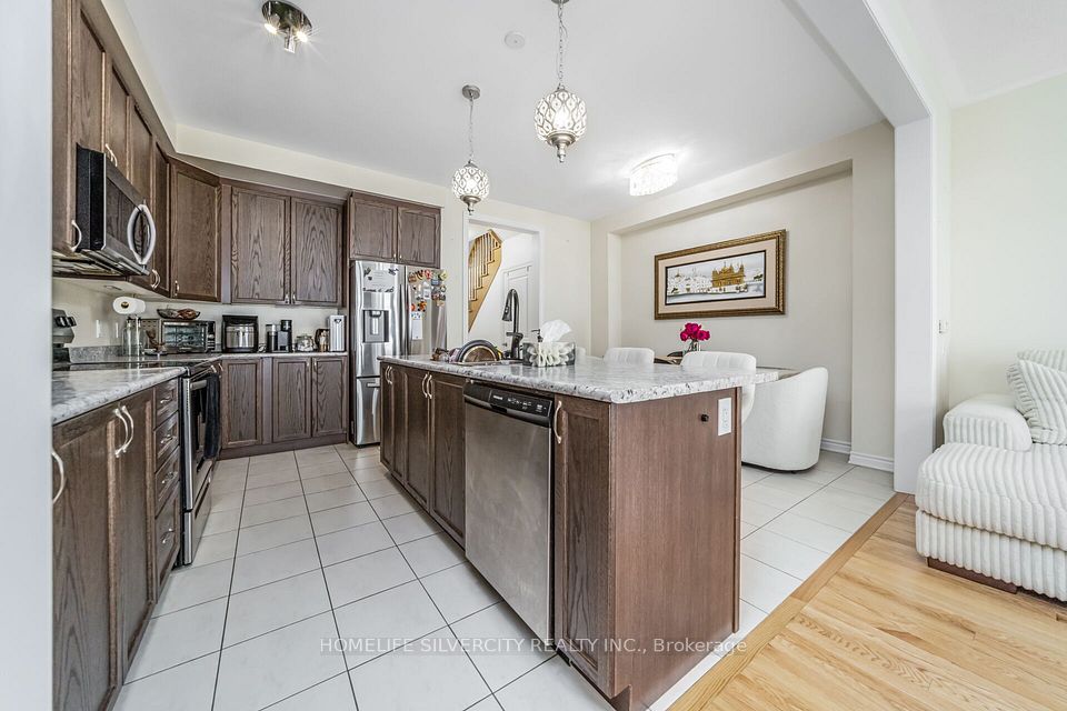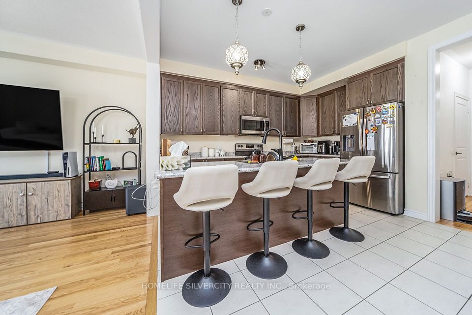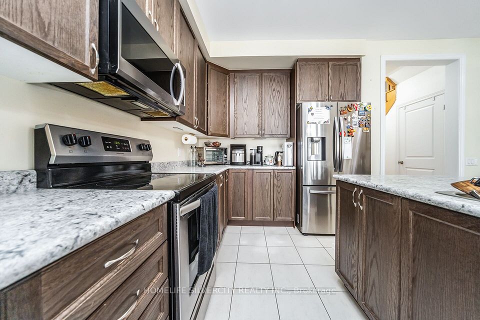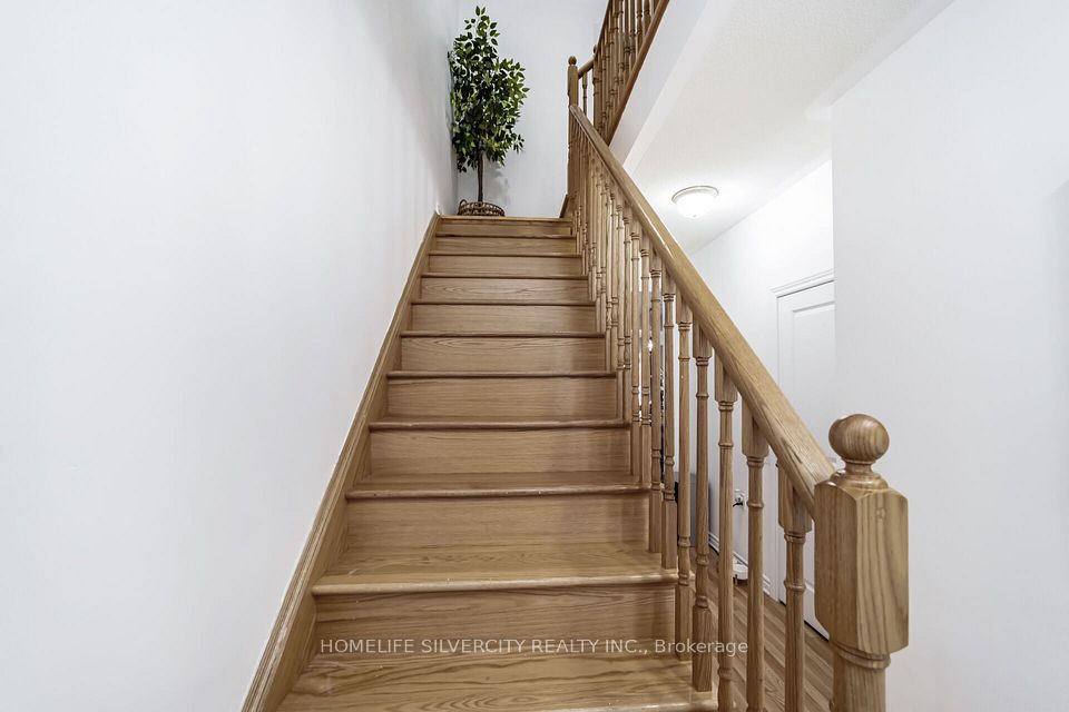 Welcome to this well-maintained freehold and upgraded 1821 sq ft home, featuring 3 spacious bedrooms and 3 washrooms. Designed with an open-concept layout, this property boasts 9 ft ceilings on the main floor, large windows for natural light, and hardwood flooring. The modern upgraded kitchen and elegant oak staircase add to its charm.The master bedroom includes a private en-suite, offering both comfort and convenience. This home has been kept exceptionally clean and is move-in ready. Situated in a friendly neighborhood, its close to schools, shopping plazas, and all essential amenities.