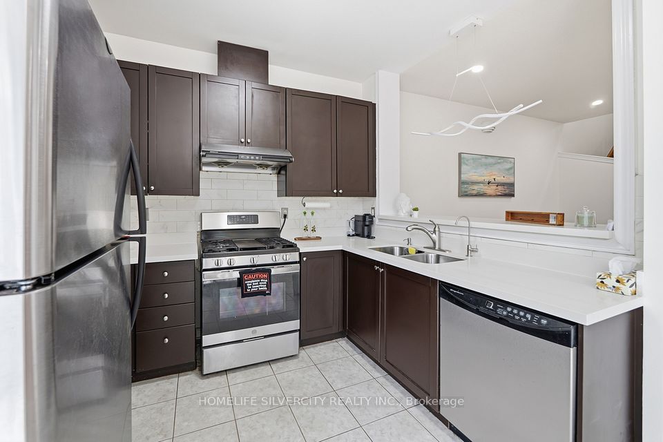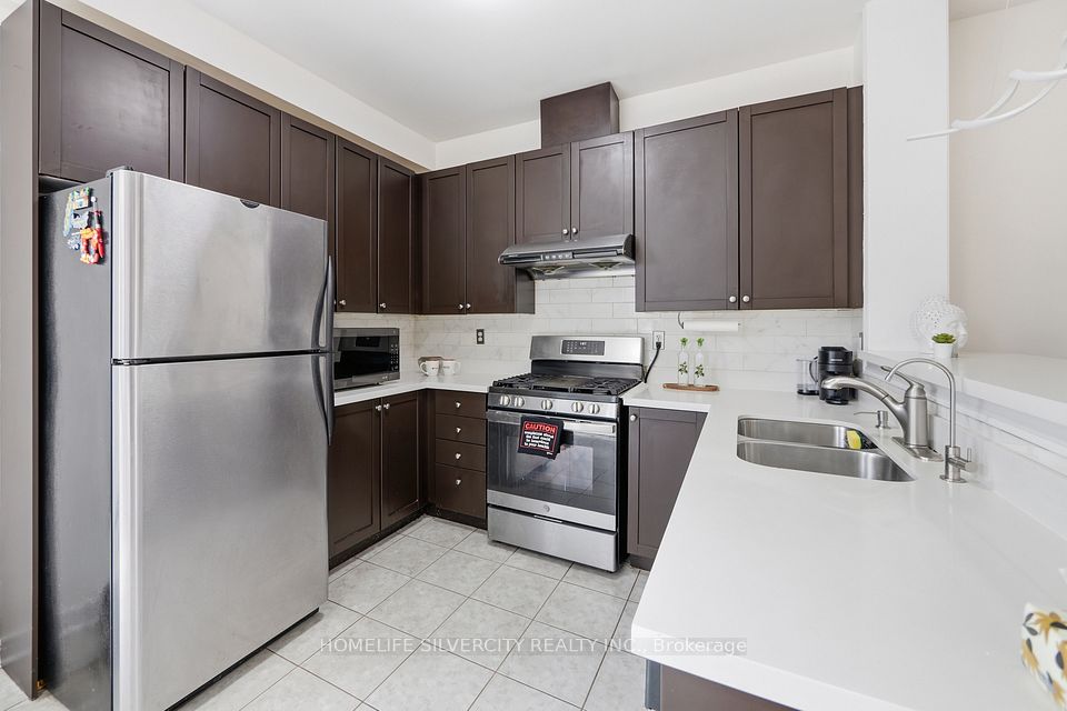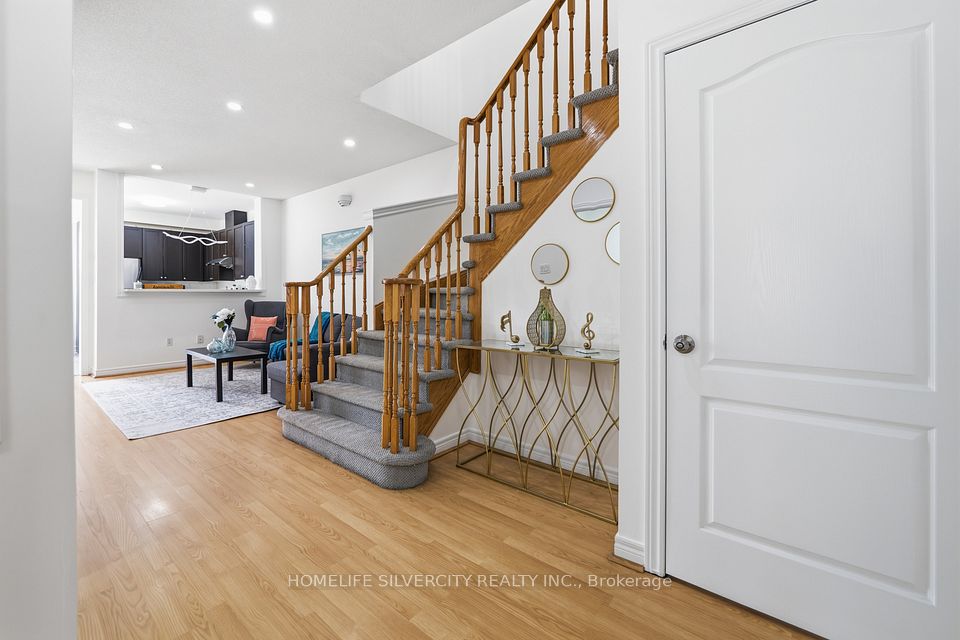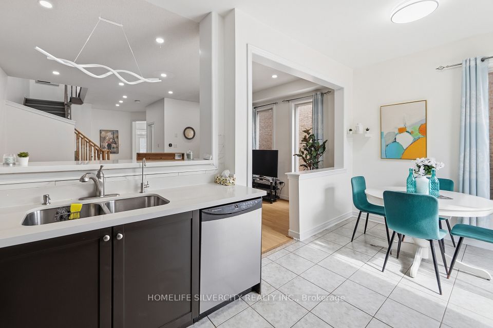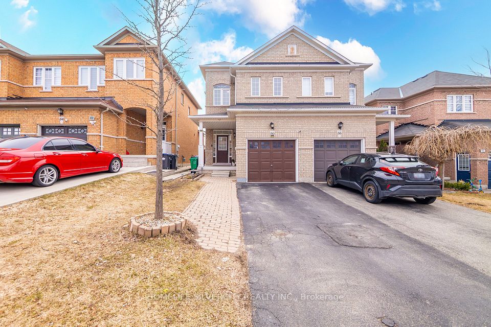 A beautifully cared-for, freshly painted semi-detached home in the prestigious Lakelands Village community. This 3-bedroom layout is complemented by a finished 2-bedroom basement with a separate garage entrance-perfect for extended family or flexible living arrangements. The main level features a bright, open-concept design with laminate floors and soaring 9 ft ceilings. The modern kitchen offers tall cabinets, quartz counters, stainless steel appliances, and a walkout to the backyard from the breakfast area. Enjoy a family-friendly neighbourhood just steps to the 14-acre lake, parks, Esker Lake Trail, and minutes to Turnberry Golf Course and Hwy 410.