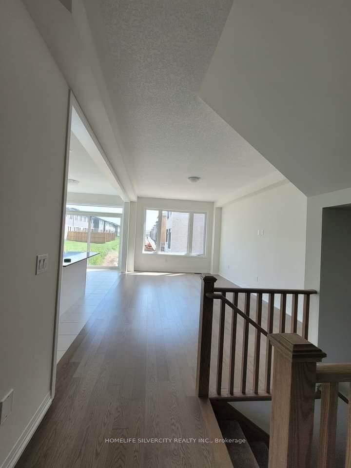 Modern and luxurious 4-bedroom, 3-bathroom detached home situated on a massive corner lot in a highly sought-after area of Cambridge, ON. The main floor features a bright open-concept layout with 9-foot ceilings, hardwood flooring, and oversized windows that fill the space with natural light. The chef's kitchen is equipped with stainless steel appliances and a large quartz island, perfect for entertaining. The upper level offers four spacious bedrooms, including a primary suite with a walk-in closet, along with the convenience of second-floor laundry. Overall, this stunning home is ideal for families seeking comfort, style, and functionality in a safe and convenient neighborhood close to numerous amenities.