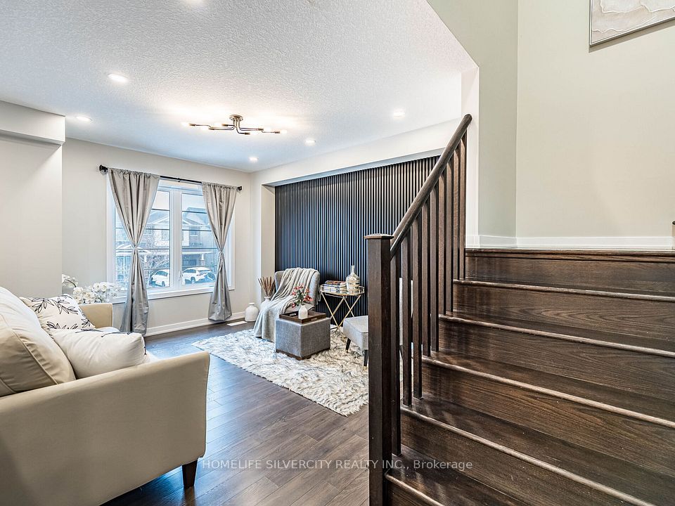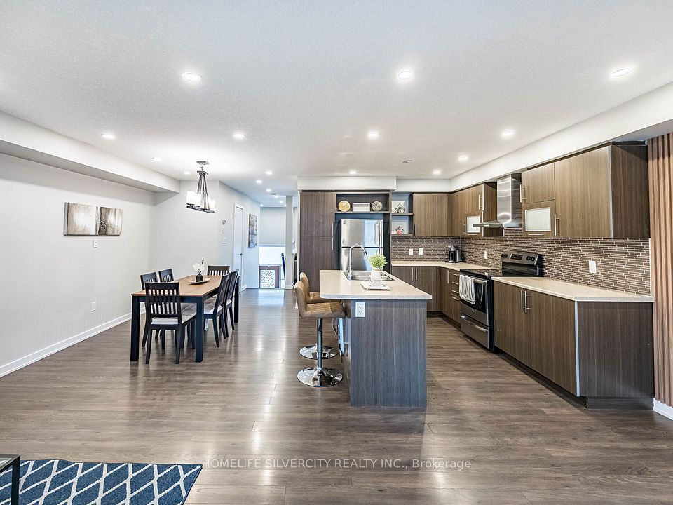Spectacular this exquisite Freehold Townhouse, crafted by Empire Homes, is nestled in the prestigious Stoney Creek community. Spanning 1744 sqft, this stunning residence boasts 9' ceilings, 3 generously-sized bedrooms, and 3 elegant bathrooms. Step inside and be captivated by the inviting open-concept layout adorned with gleaming hardwood floors on the main level and laminate on the first floor. The spacious family/living room seamlessly flows into a sunlit, upgraded contemporary kitchen featuring stainless steel appliances, an oversized breakfast island, and direct access to a beautifully tiled patio with a gazebo perfect for entertaining guests. The master suite is your personal retreat, offering a spacious walk-in closet and a private ensuite. Enjoy the convenience of bedroom-level laundry and the elegance of upgraded light fixtures throughout. The unfinished basement offers limitless potential for future expansion. Outside, the backyard is ideal for hosting BBQs and outdoor gatherings. The water heater is owned, not rented, adding to the home's convenience and peace of mind. This home is perfectly located near major highways, schools, shopping destinations, the Go Station, golf courses, and more. Plus, it backs onto beautiful trails and waterfalls, providing a serene backdrop for relaxation and outdoor activities. Show with confidence!